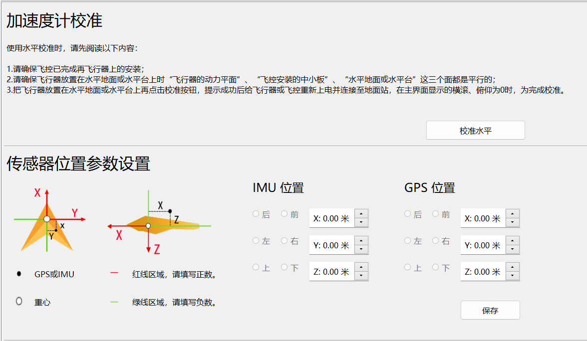 当飞控安装位置以及GPS安装位置相距飞行器中心位置较远时,可以设置