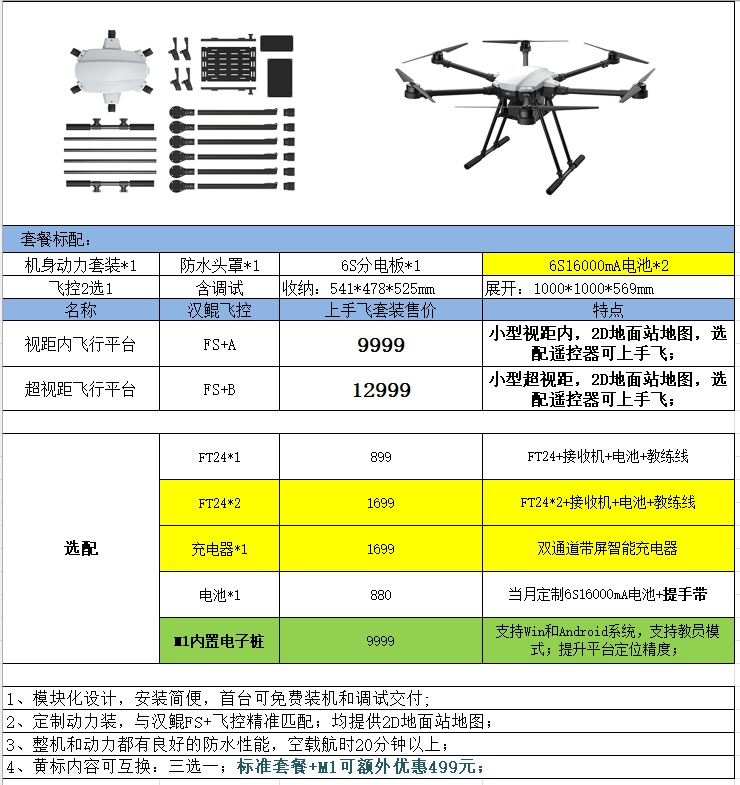 HK-6100也可选配FE飞控,选配FE-E飞控,整机售价为13099元/台