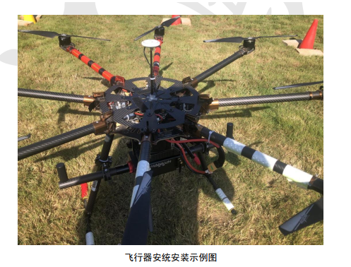 ● 外置电池,使用 DC 接口供电,电池电量显示。可 DC 转 LiPo 电池供电,供电范围 2S~12S 安装时需要保证魔术贴的一面朝上,L0G 方向为机尾方向。 并且安装时,需要尽量靠近上方与水平中心(即近飞行器动力中心)。否则飞行器可能出现重心下移导致较大振动。 3)短天线接入 RTK 端口,长天线接入 4G 端口:
