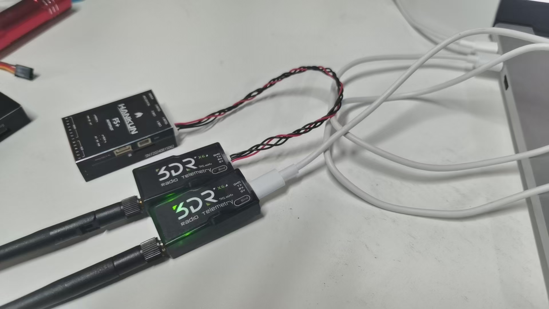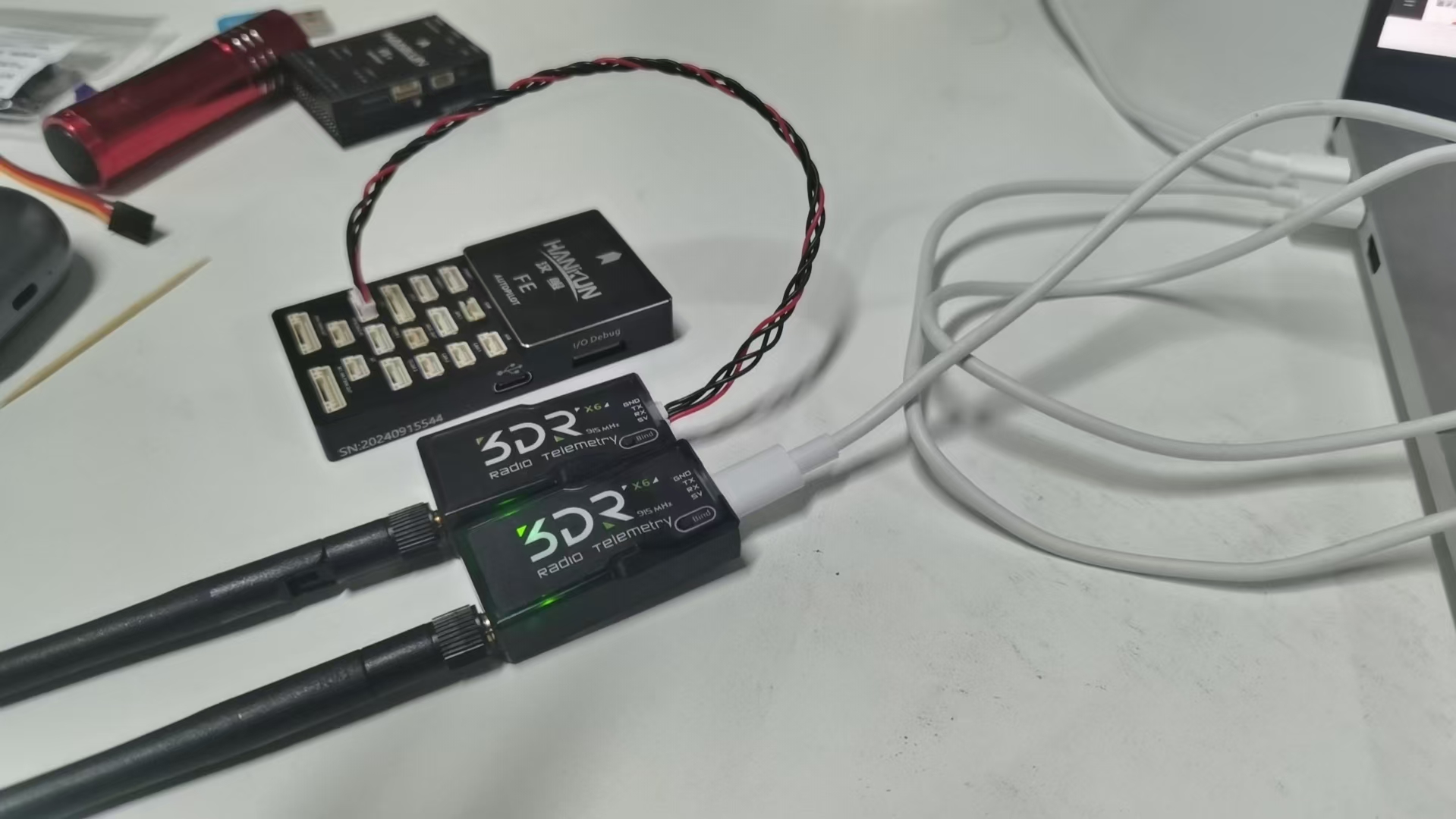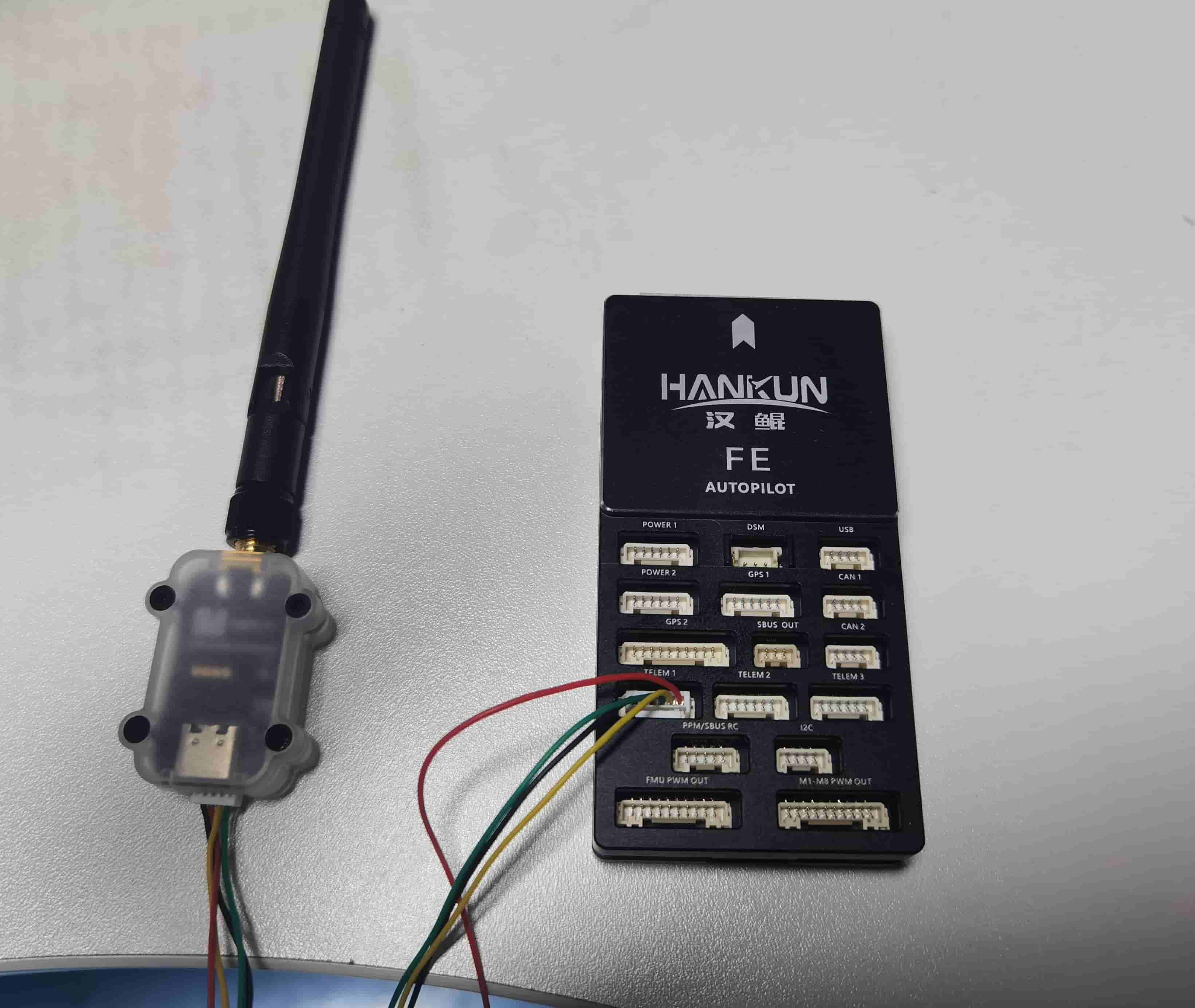915数传都是一对成对的,随便拿其中一支,接飞控上的TELEM1口,另一只,用type-c线接电脑上的USB口