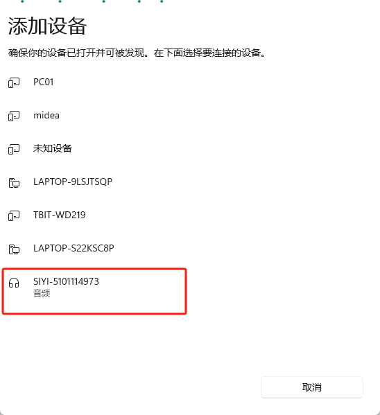 打开电脑的蓝牙功能,在蓝牙界面选择“添加设备”-蓝牙设备,等待搜索