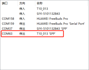 会看到下方显示“comx 传出 T10-XX"SPP"”,注意有这个 spp 的就是正确的 com 口号