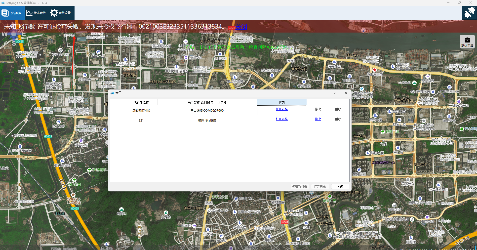 3.保证电脑处于联网状态,打开地面站后,点击右上角的连接按钮