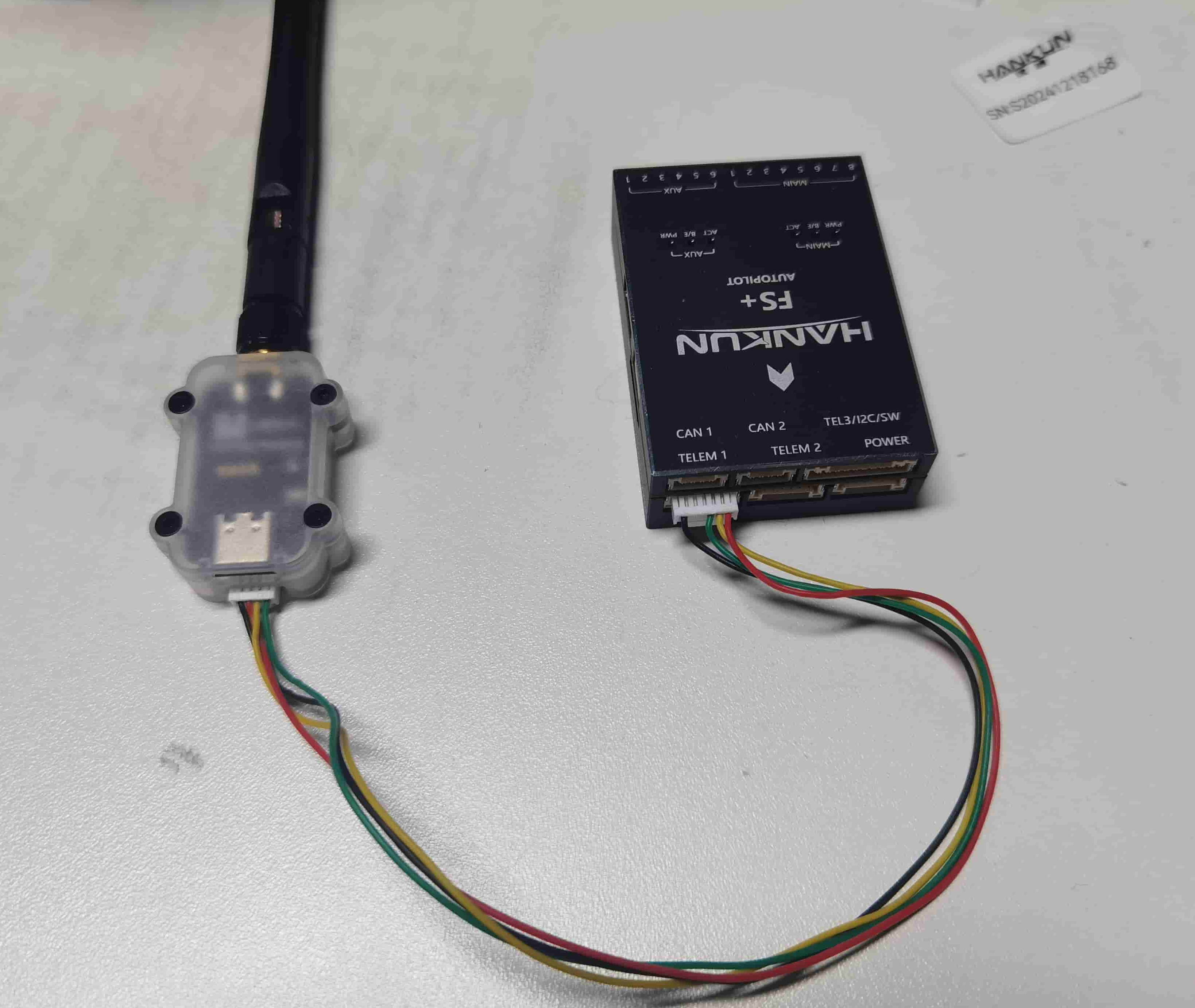 FT24是数传和接收机一体的,接收机内置蓝牙数传,因此数传线一端接接收机上的UART口,另一端接飞控的TELEM1口